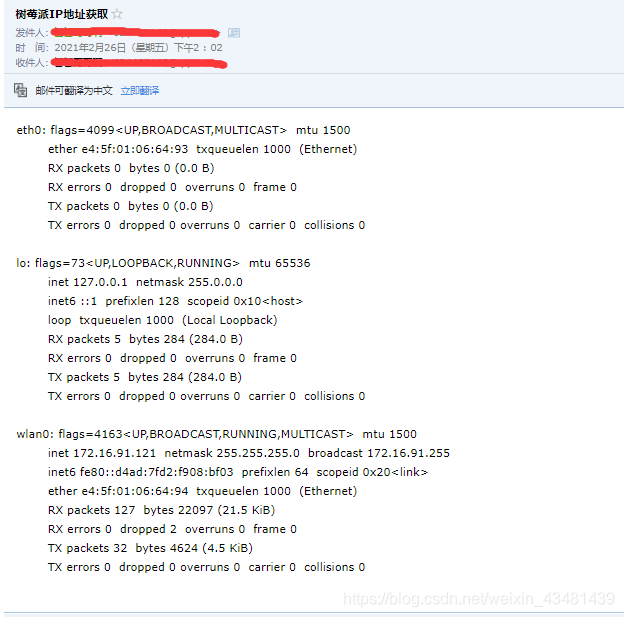在每次树莓派开机并且连接WiFi成功后就发送邮件到QQ邮箱中。